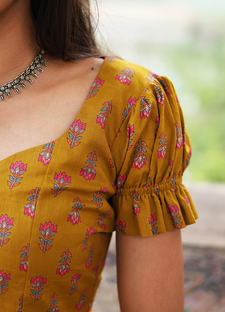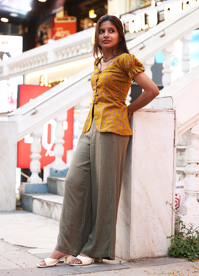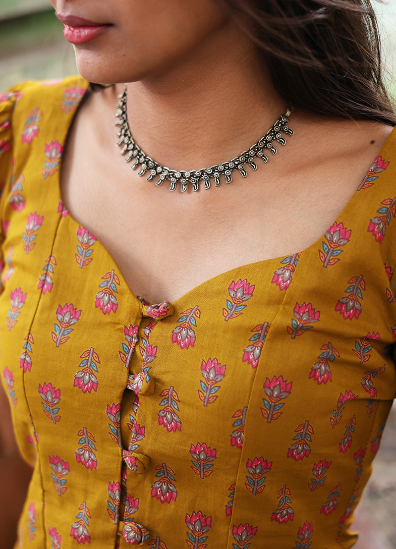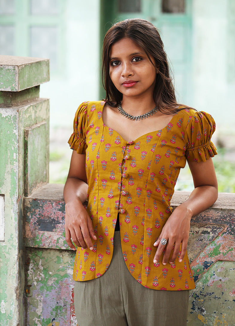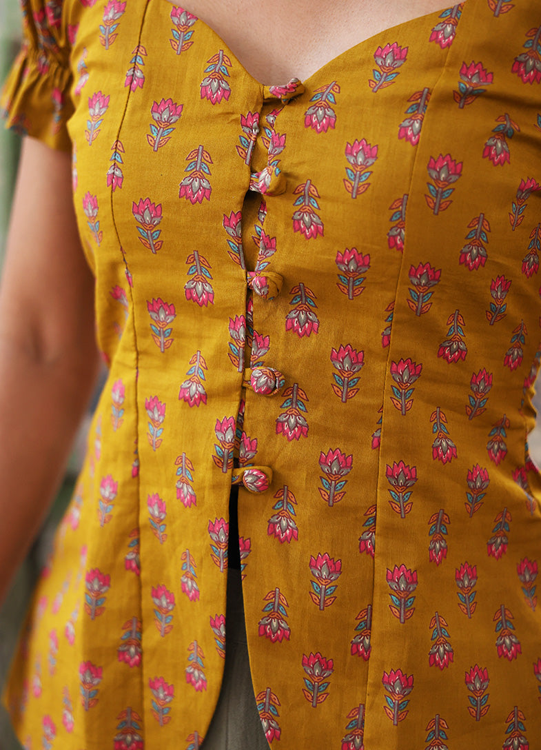 Crafted with intention and finished with finesse, this pure cotton top celebrates understated luxury. The elasticated puff sleeves create a graceful structure, while the front button closure adds a vintage-inspired charm. Thoughtfully lined for comfort, this piece embodies everyday elegance with a refined edge.
